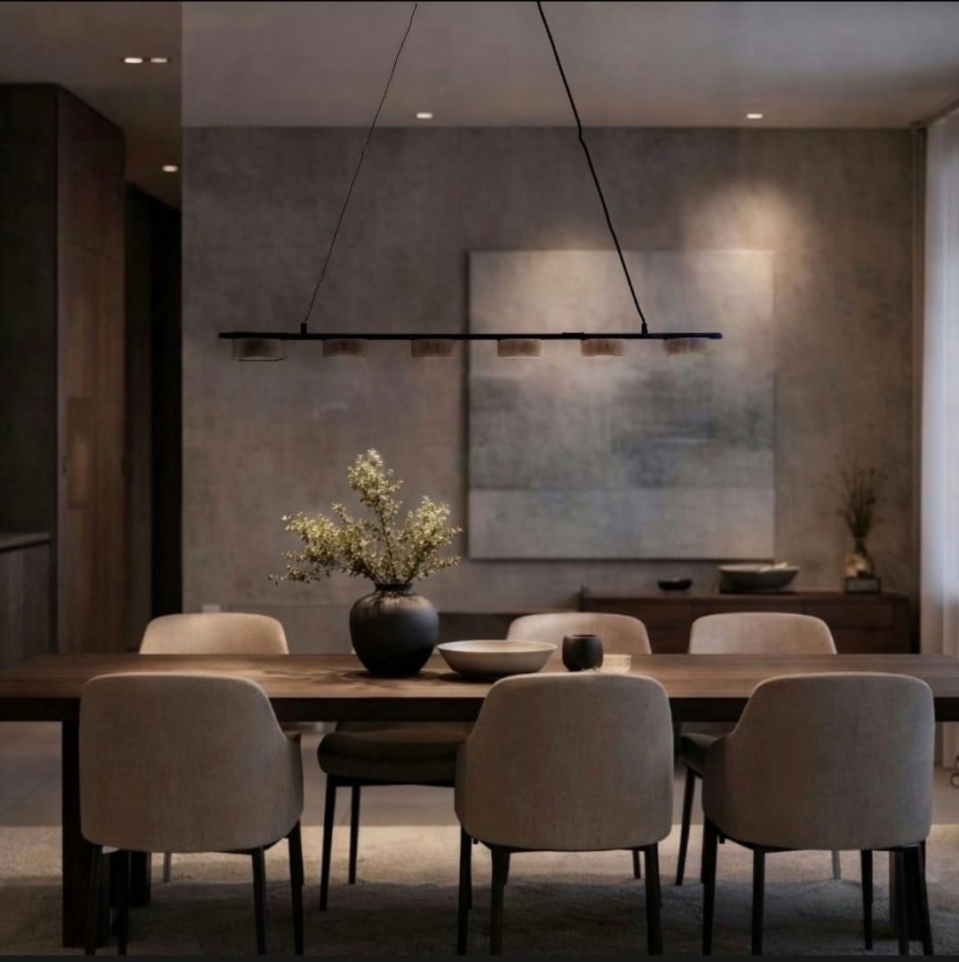 Essa luminária pendente de design moderno e linear.